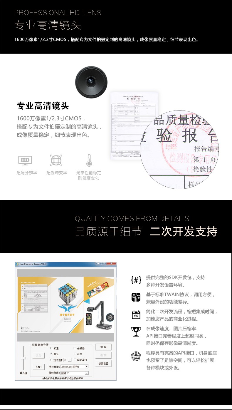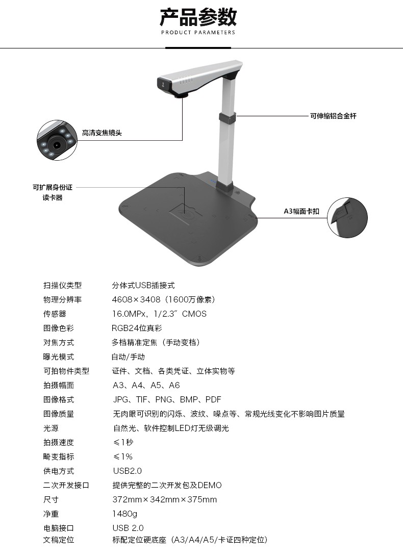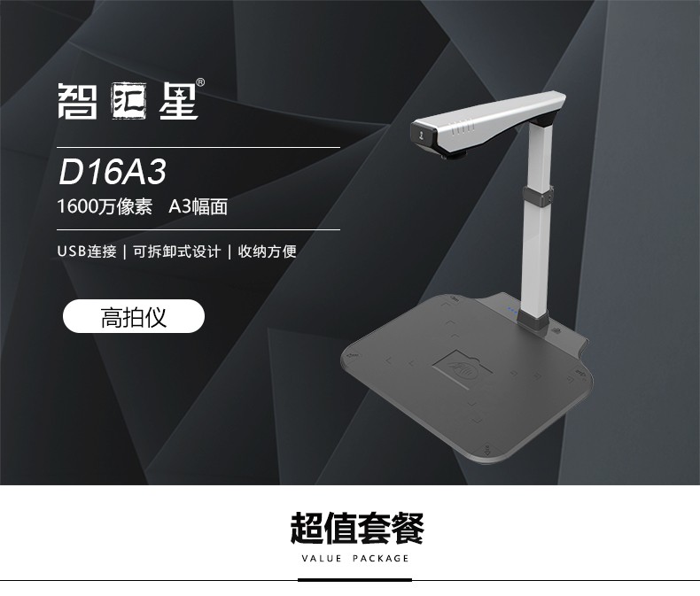捷宇智汇星D16A3高拍仪高清a3扫描仪高速办公1600万像素文件拍摄仪可选配二代证阅读器 高拍仪